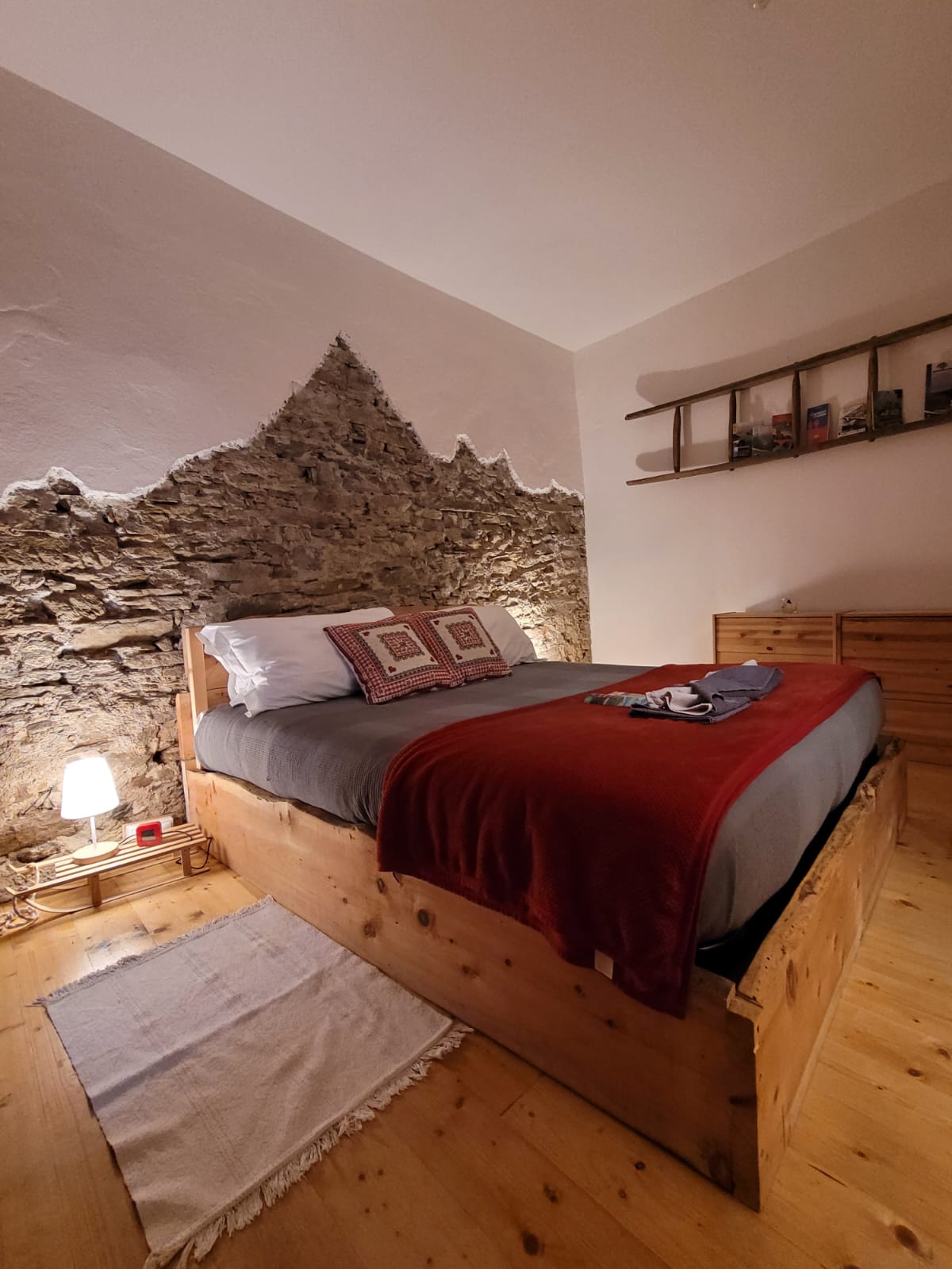 I lavori di ristrutturazione sono considerevoli, ma tutti nel rispetto del vecchio fabbricato, perchè qui è la montagna che deve emergere, e così piano piano nasce una piccola baita, meravigliosamente arredata, che ti porta in alta montagna. e dove c’è il cuore di Giò e Ale, che in questo posto ci hanno messo l’anima montanara che consevano nel loro spirito.